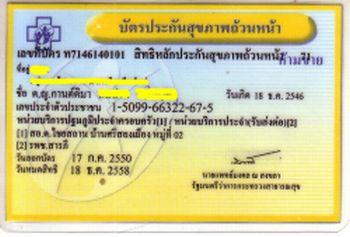 so ne Karte hatte meine Frau nie, musste immer die TH-ID Karte vorweisen, aber wie du @P-Pong bereits erwaehnt hast, die 30 Baht Versicherung als solche gibts es eigentlich nicht mehr, da die 30 THB nicht mehr eingezogen werden.