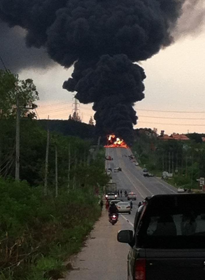 Aktuell: Explosion eines Gas-Tanklastzug auf dem Highway 3138 in Rayong