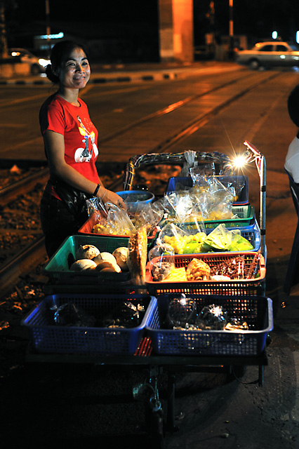 Sie hat mich des Nachts oft mit frischem Obst versorgt. Leider ist sie 2011 verstorben, Krebs. Jeden Tag an Bangkoks Straßen arbeiten ist alles andere als gesund!!!   :(