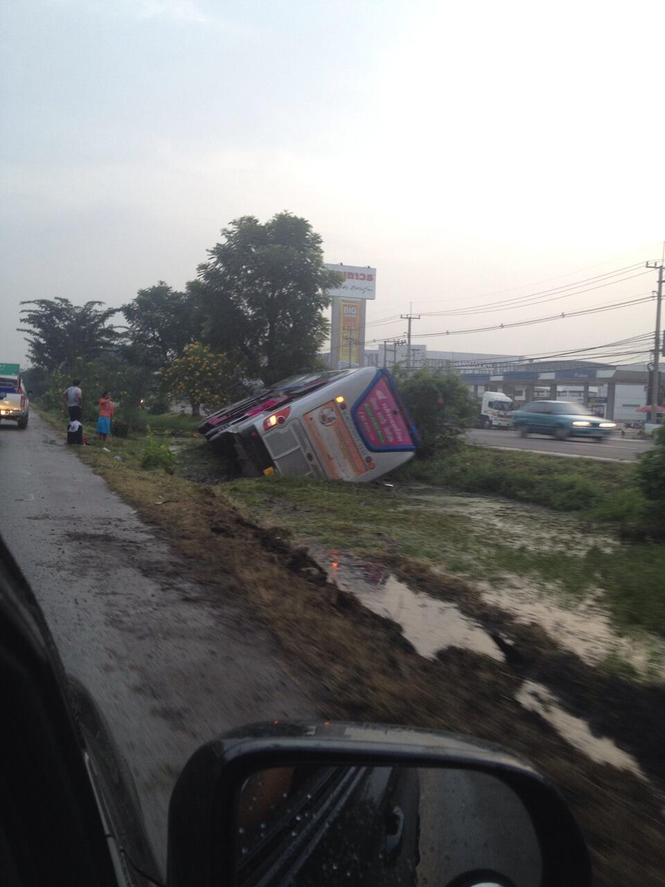 6:40am A coach has crashed into a drainage ditch on Rama II inbound road. No reports of injuries yet (Pic @aichoka)