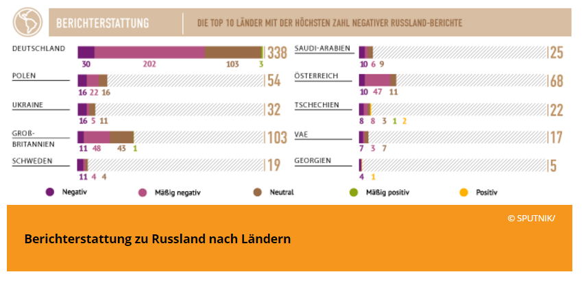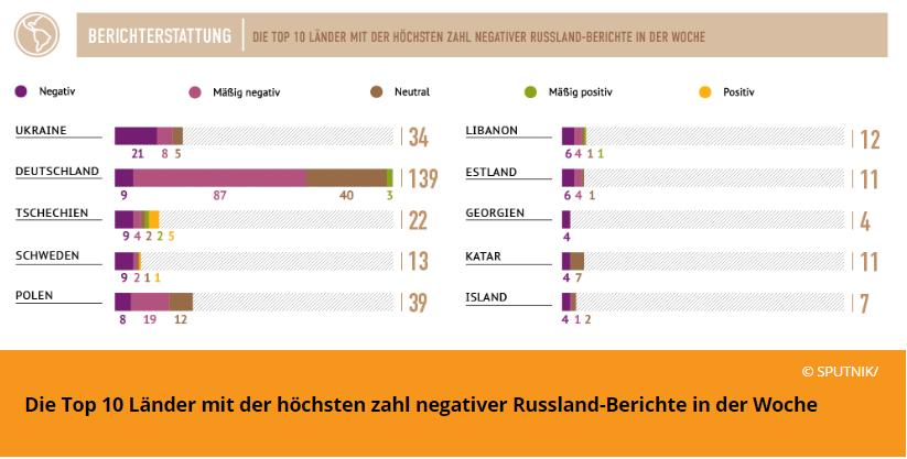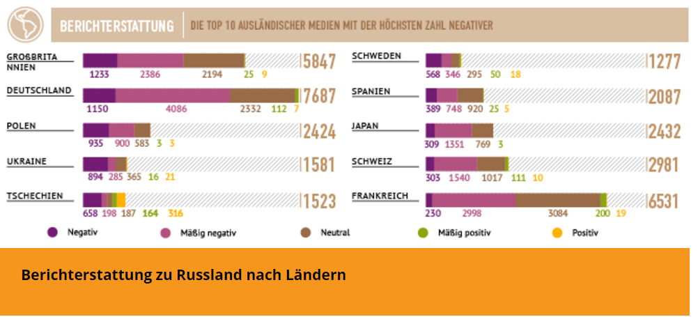 Negative Berichterstattung über Russland nach Ländern