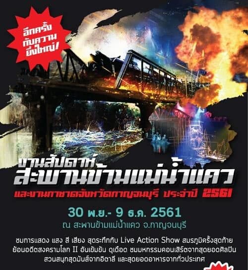 Die River Kwai Bridge Week findet in diesem Jahr vom 30. November bis 9. Dezember 2018 statt. Es werden nächtliche Licht- und Soundshows stattfinden.
