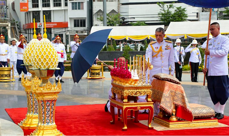 Heute fand eine Gedenkzeremonie mit König Rama X vor den Taksin Statue am grossen Kreisverkehr (Wongwien Yai) in Thonburi statt