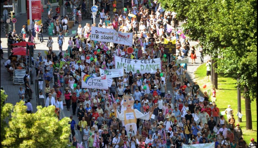 Armageddon, die letzte Schlacht, die steht bevor. Wenn das transatlantische Handelsabkommen TTIP durchkommt, dann ist es vorbei mit der Demokratie. Es gibt keinen Grund, warum die Demokratie in Europa, dieser kleinen, Asien vorgelagerten Insel mit einer unglaublichen Geschichte, dass die Demokratie hier ewig ist.